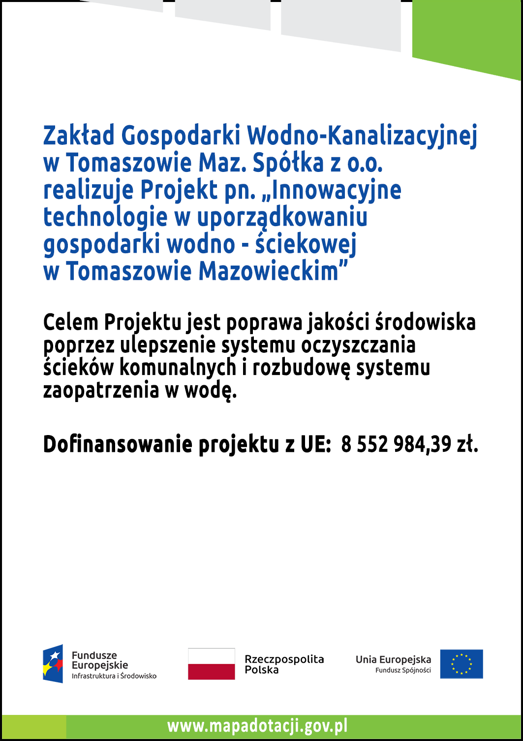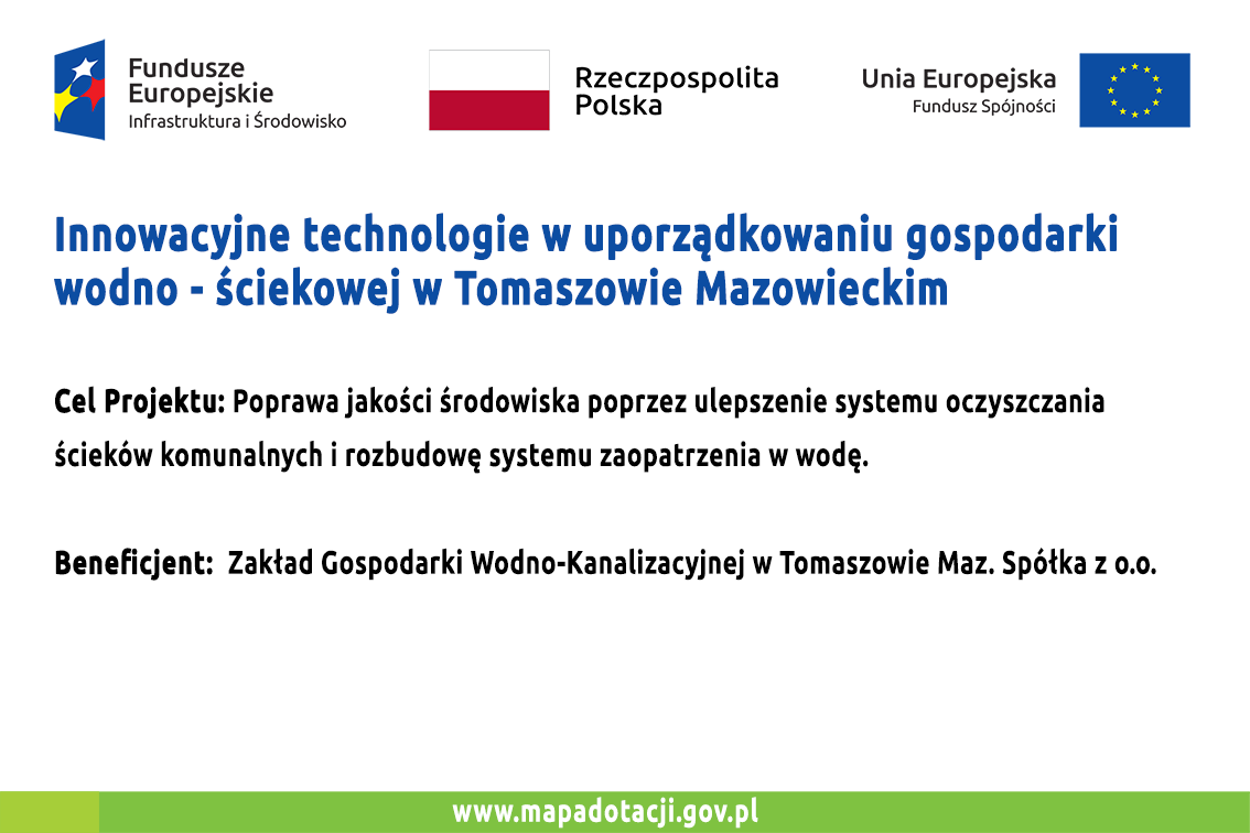 Zapytanie ofertowe na "Wykonanie materiałów w ramach działań promocyjnych w związku z realizacją projektu pn. "Innowacyjne technologie w uporządkowaniu gospodarki wodno-ściekowej w Tomaszowie Mazowieckim"